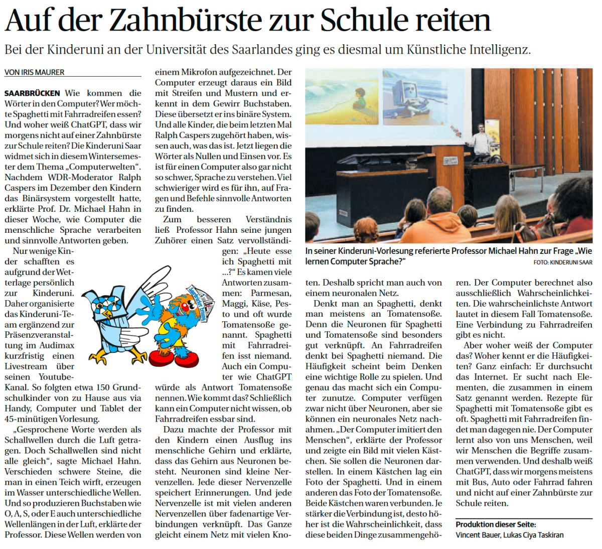 Saarbrücker Zeitung (SZ) vom 18. April 2023: Wie Künstliche Intelligenz den Alltag von Kindern prägt